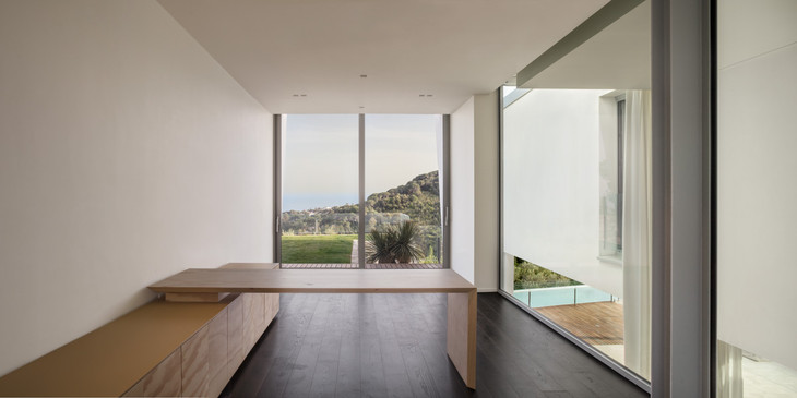 The housing structure itself provides solutions of passive solar architecture, through porches of different dimensions and pergolas of wooden beams on the southern facade. Rainwater from landscaped covers is collected in buried deposits and reused for irrigation of the unbuilt garden area. In addition, the house integrates a system of air conditioning through aerothermal technology and double-flow ventilation, which, together with the natural thermal insulation of the covers, the home automation installation, the construction system itself and the exhaustive study of the composition of the different skins of the building; they have made this house to have obtained an energy certification A.